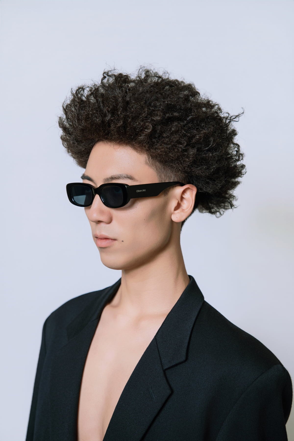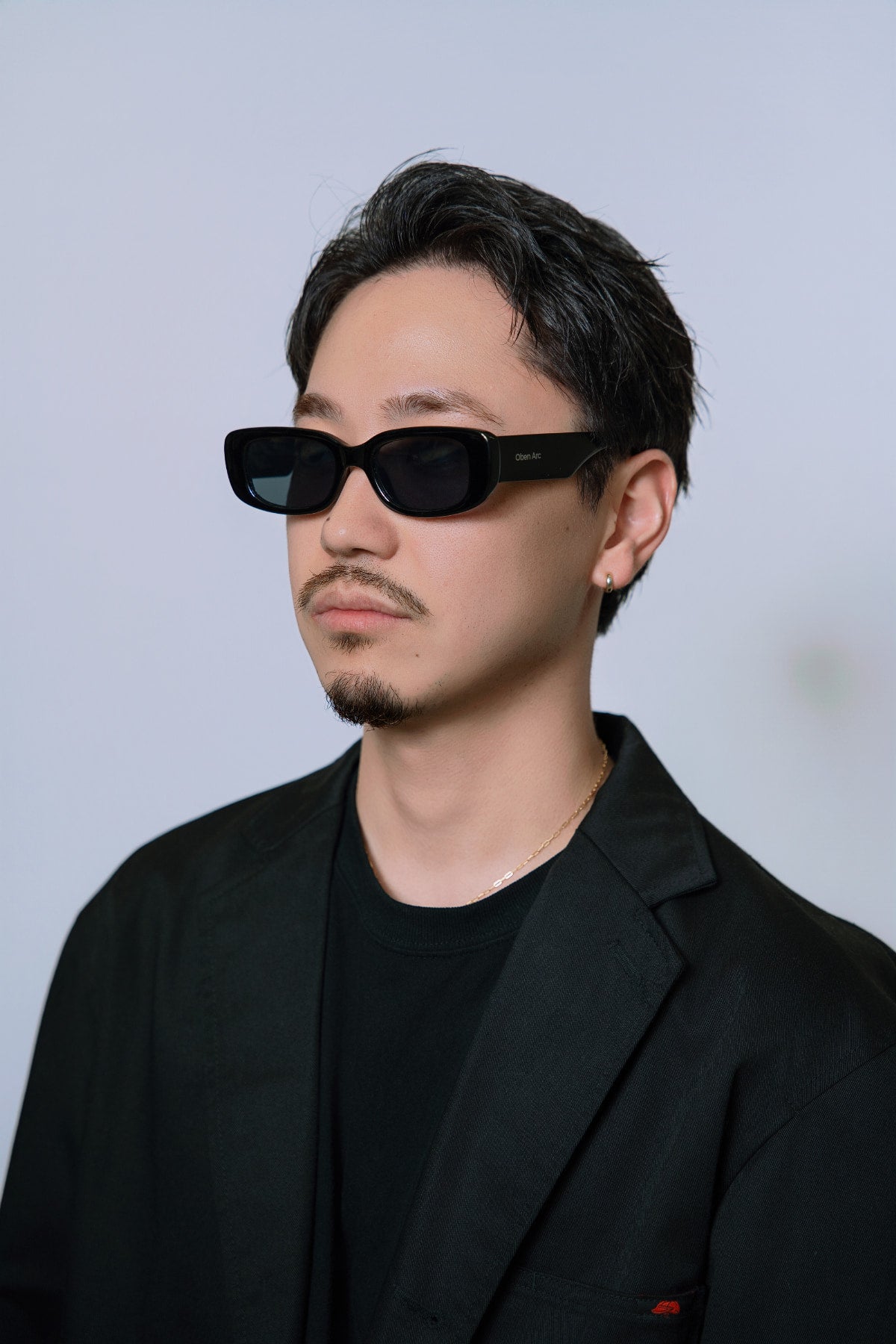 細身で滑らかなシルエットが、目元にすっきりとした印象を与えるサングラス。
