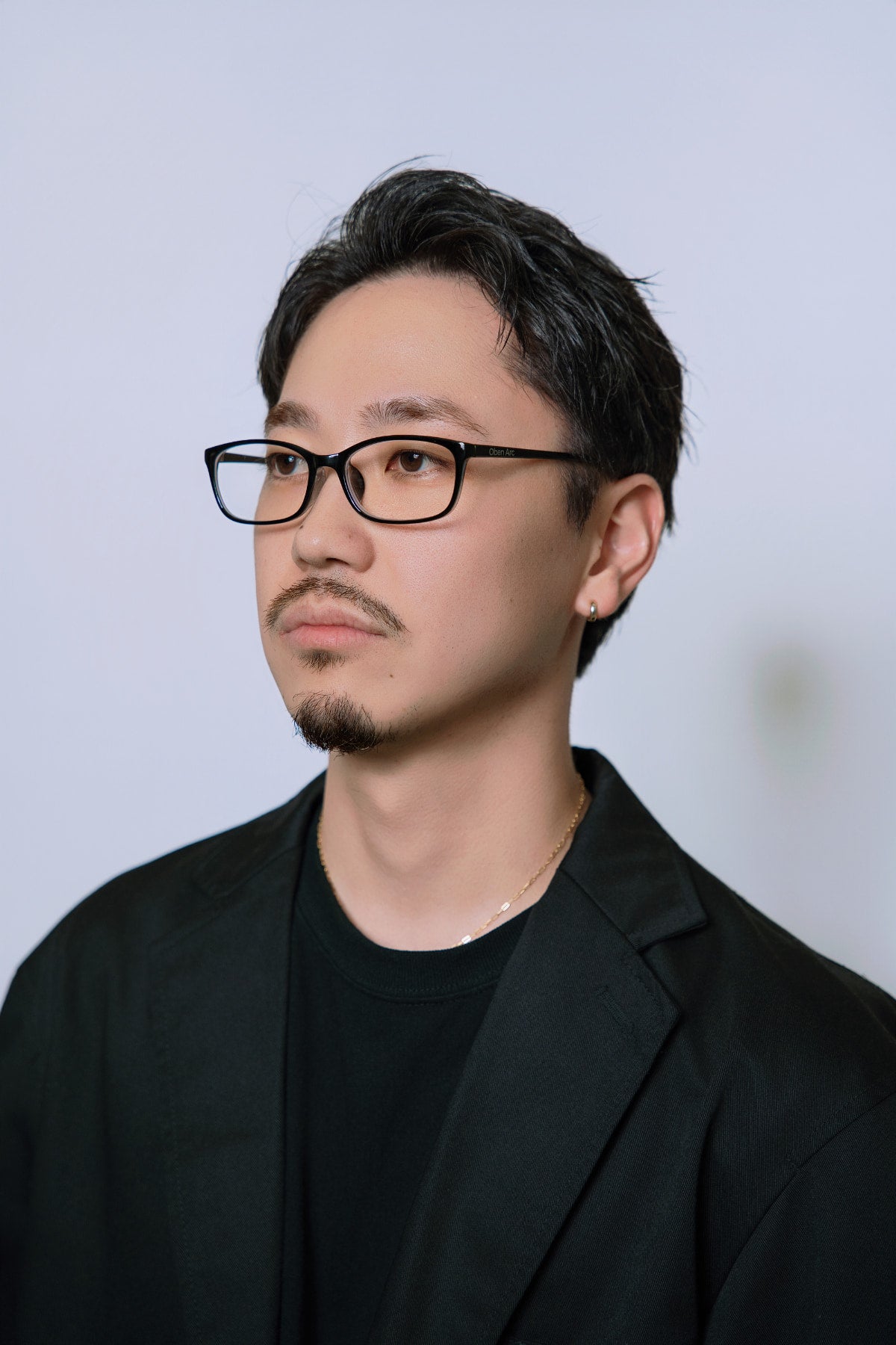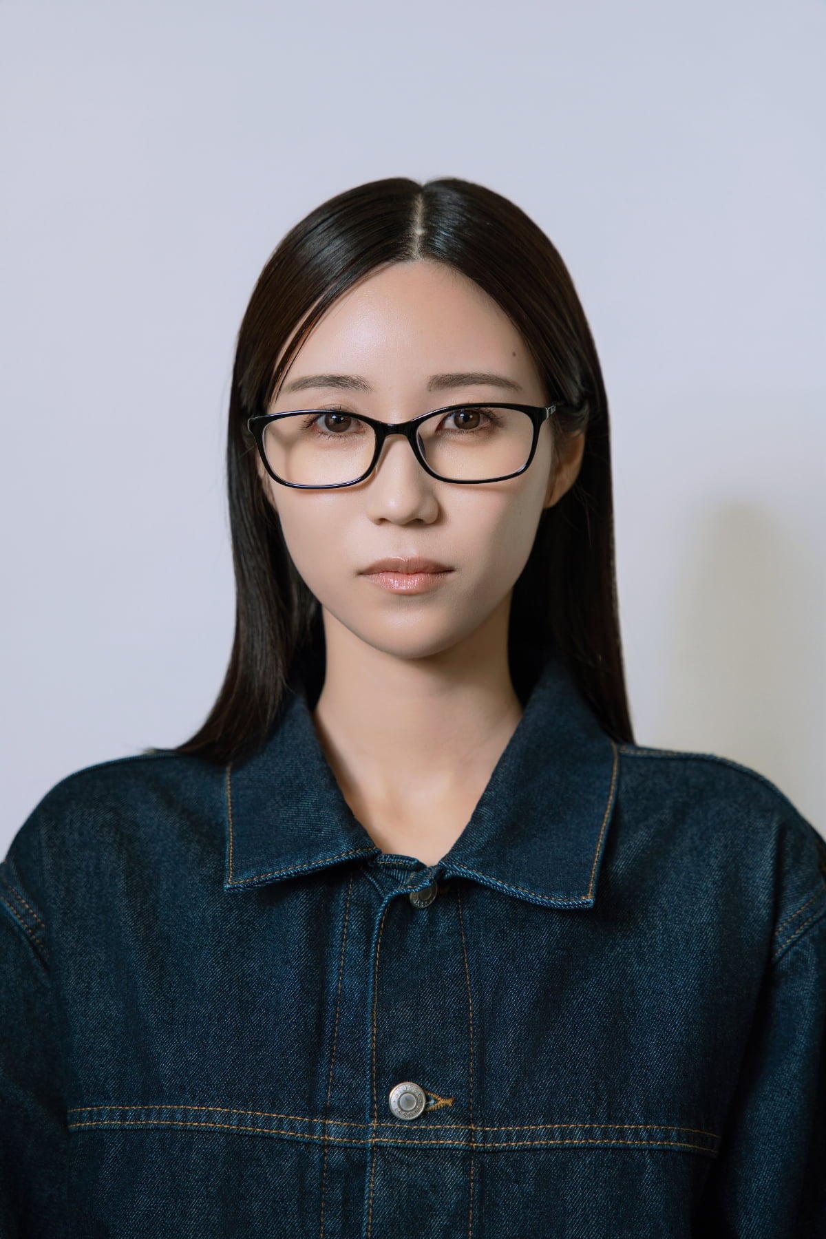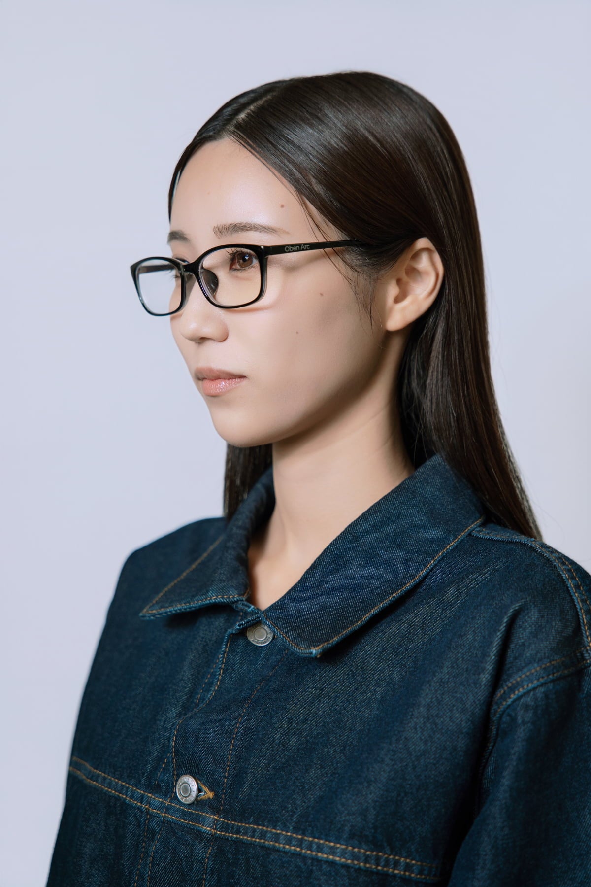 シャープなラインが顔まわりをすっきりと見せ、知的でモダンな雰囲気を演出します。
