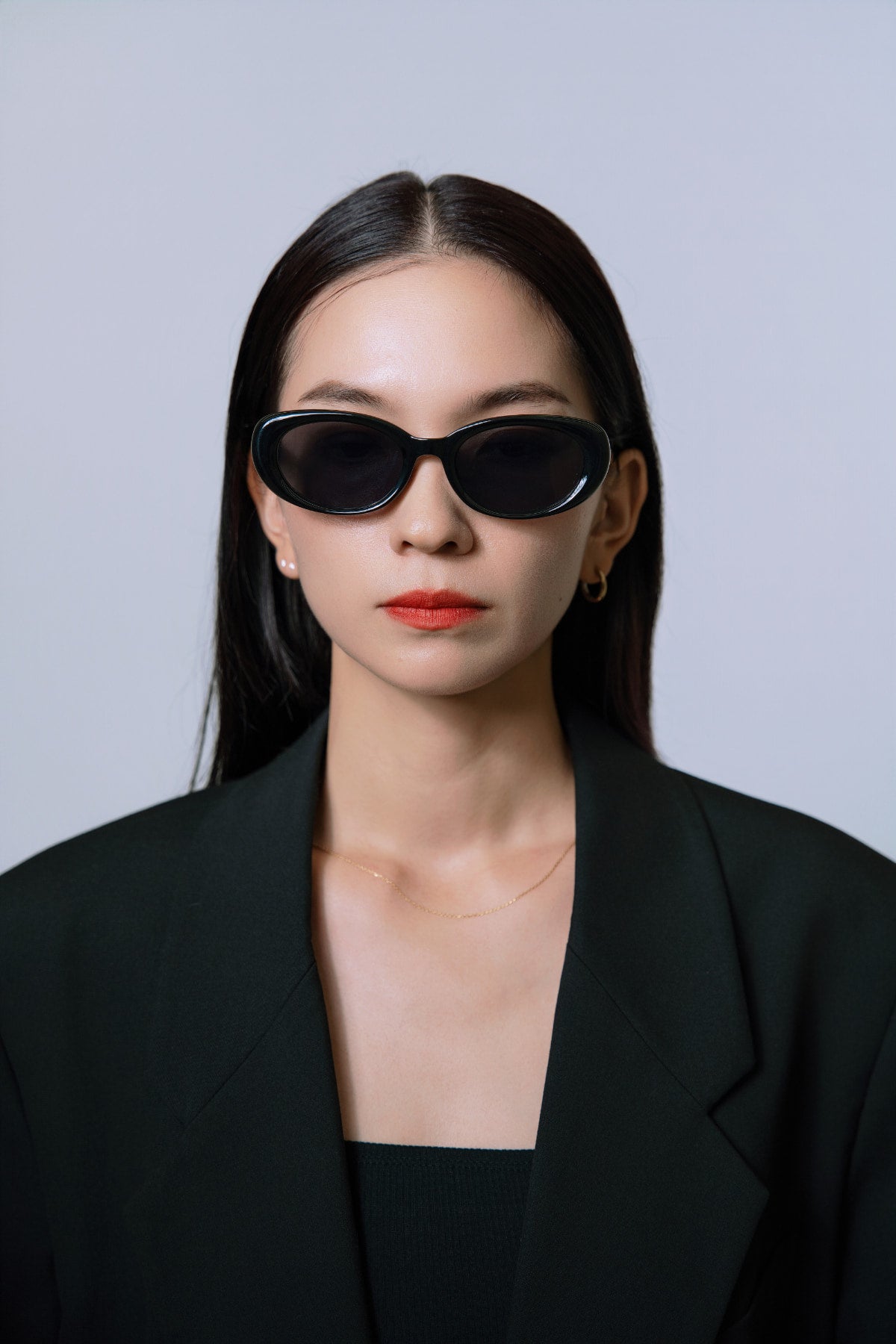 顔まわりを自然に引き締めながらも、ミニマルで計算されたフレームラインがさりげない個性を添えます。